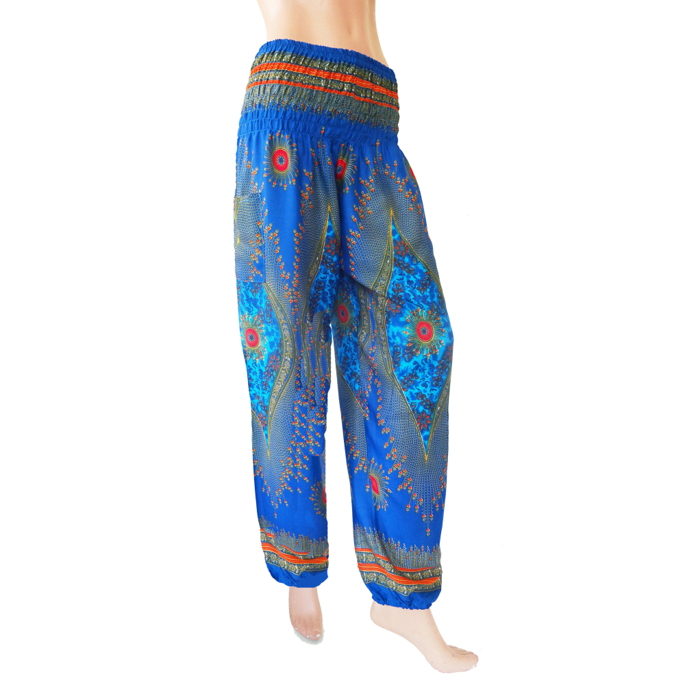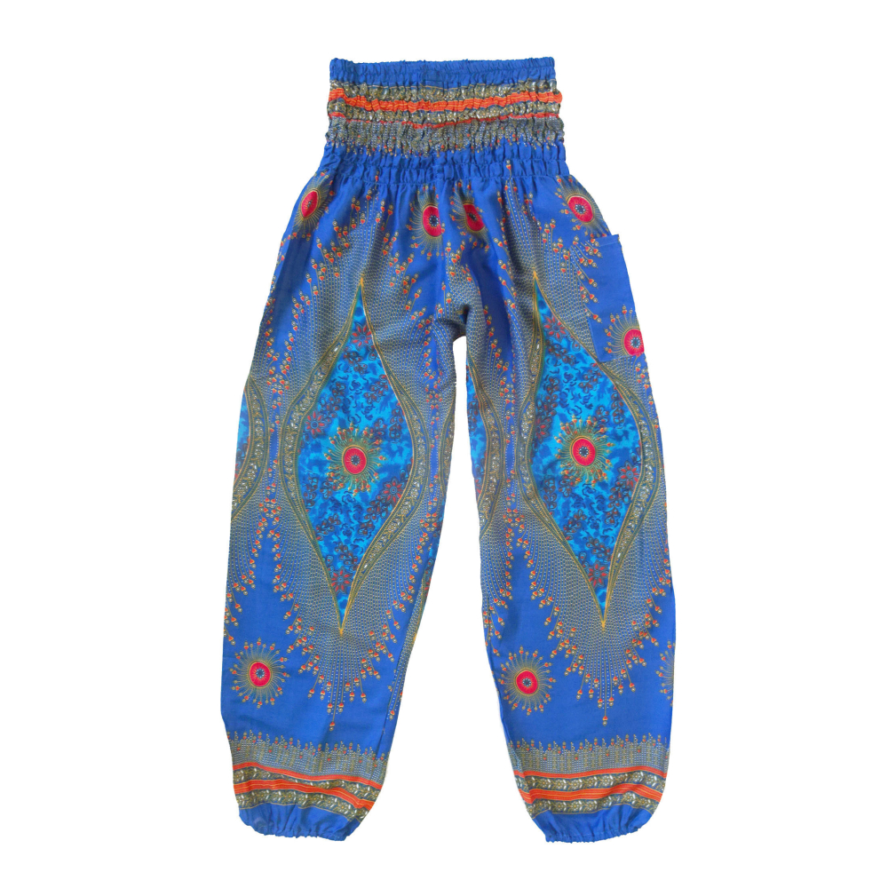 Zomerbroek voor dames en heren met elastiek in de gesmokte taille en rond de enkels en een zak op de heup. Deze broek draagt heerlijk, en laat je vrij in je beweging.