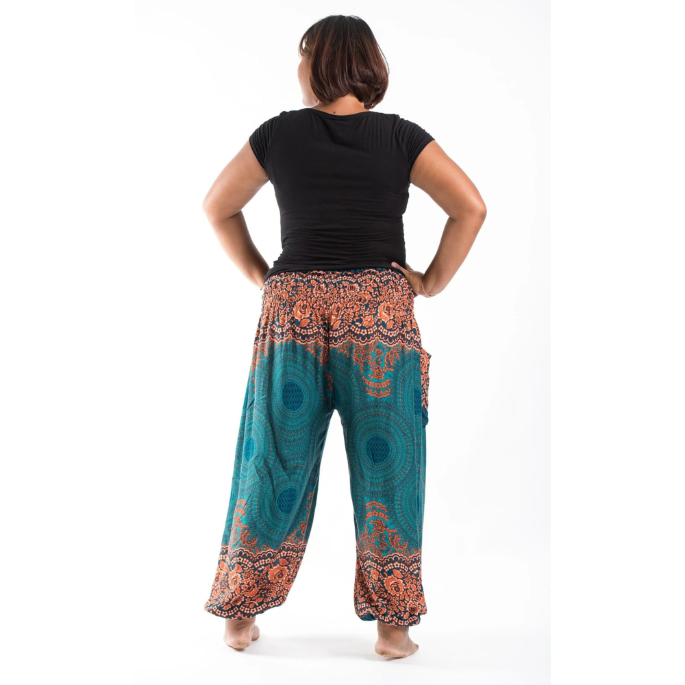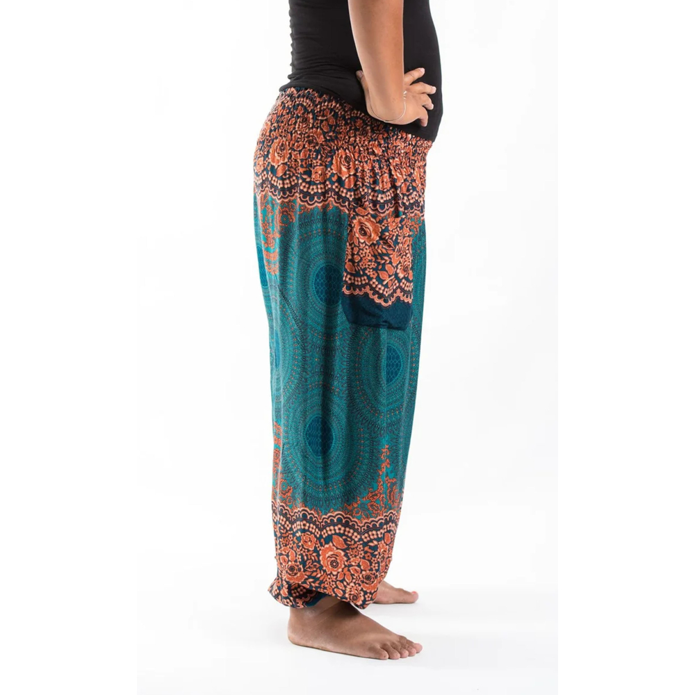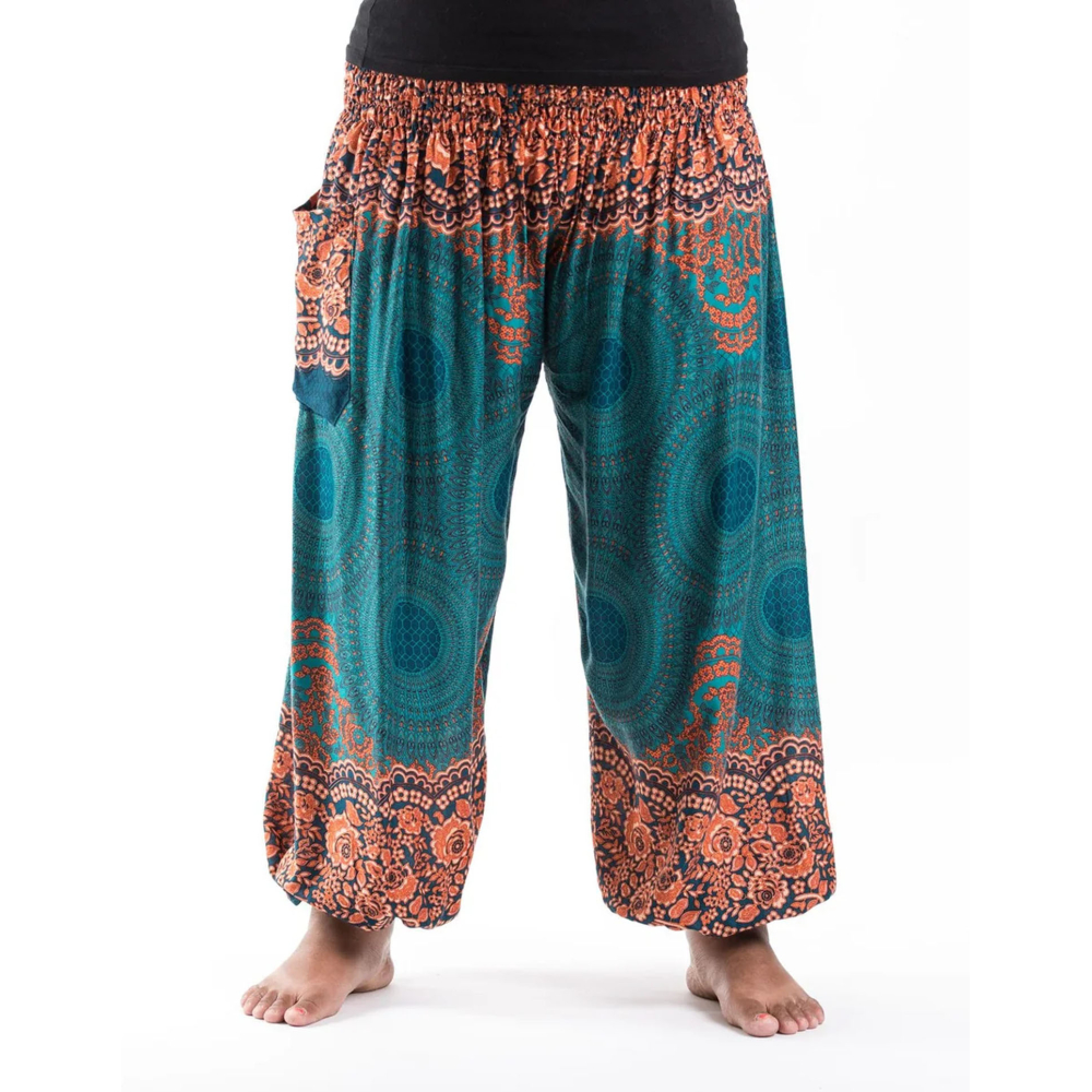 Zomerbroek met elastisch gesmokte tailleband, elastiek rond de enkels en een zak op de heup.