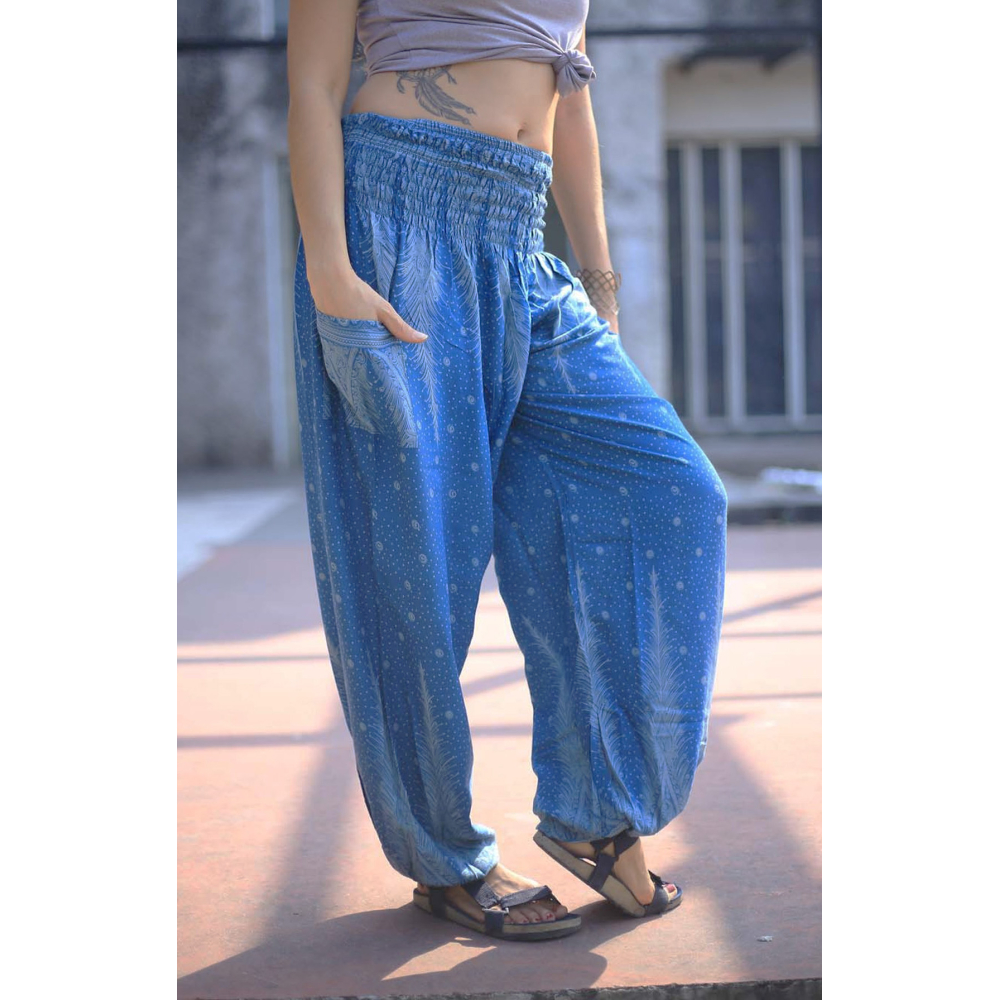 Zomerbroek voor dames en heren. Met elastiek in de gesmokte taille en rond de enkels.